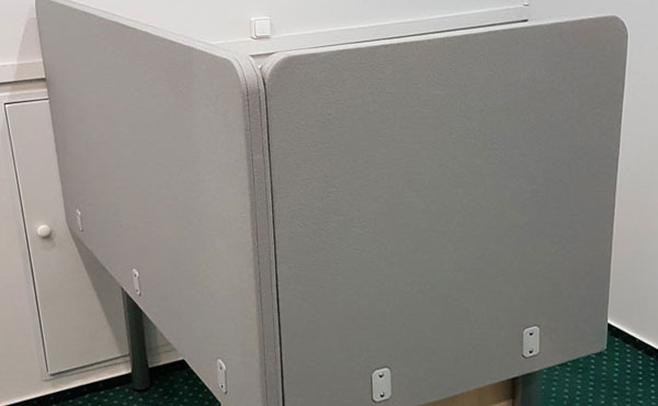 In our offer, you will find hanging upholstered walls mounted to desks with brackets or wall brackets, as well as high acoustic panels standing on the ground. Upholstered soundproof walls can stand on the ground on special legs or legs with wheels, which gives them mobility.