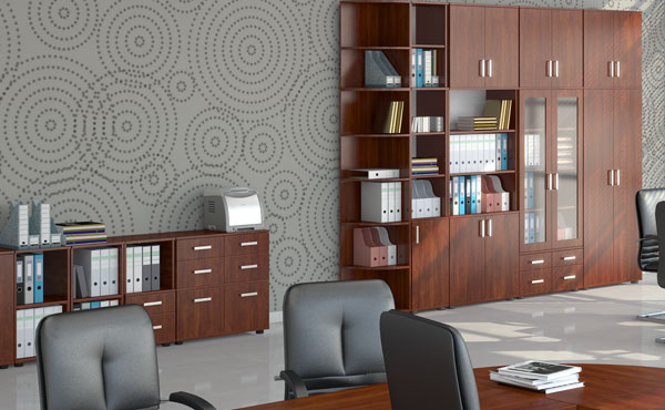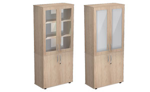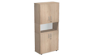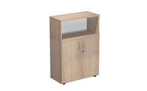 Florida shelving units on adjustable legs with height leveling (+/- 25 mm). Fixed gaps for A4 files (about 33 cm), top panel available in either 18 mm or 25 mm thickness. Additional locks available for a fee, fixed shelves. Body made of 18 mm thick board. Back panels made of HDF (3 mm) always in white. Florida filing cabinets, thanks to their modular design, allow for functional arrangement of any office space.