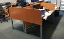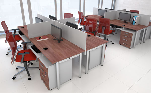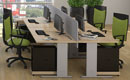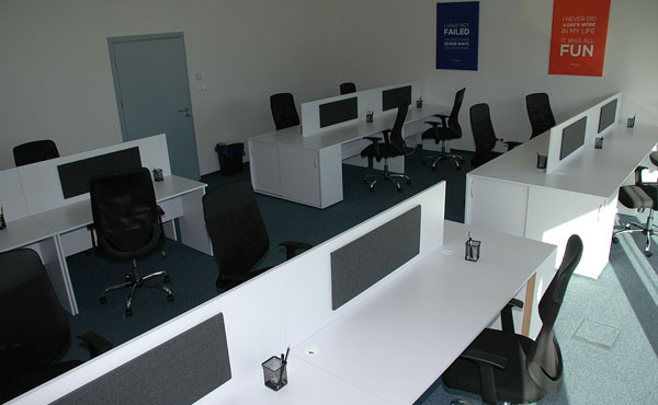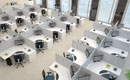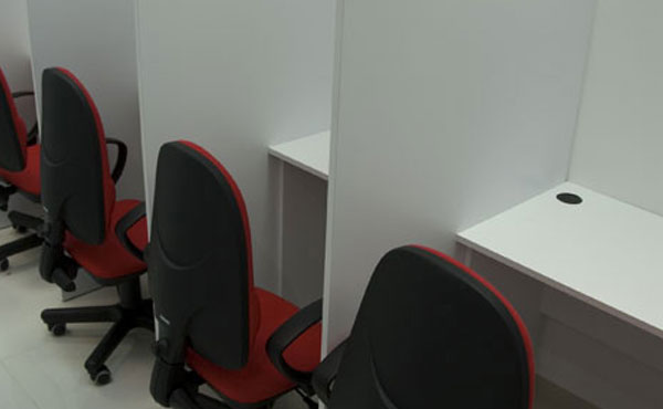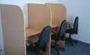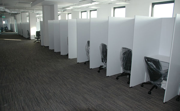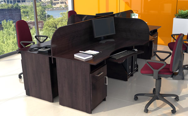 Call center workstations can be single, double, or even larger with up to 20 or 30 people in one row. The partition walls are installed separately and form a stand-alone structure into which we insert desks of any size and style.