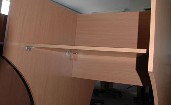 Our call center partition walls are made entirely of 18mm and 25mm thick melamine board, covered with 1mm or 2mm thick ABS edging. We also offer partition walls for open spaces, which include desks with partitions made of furniture board, available in non-standard shapes upon request. The elements dividing the desks can have any shape and size. Our furniture for call centers and open spaces is made 100% from our production. The modular design of our call center cubicle system allows for functional arrangement of any office space.