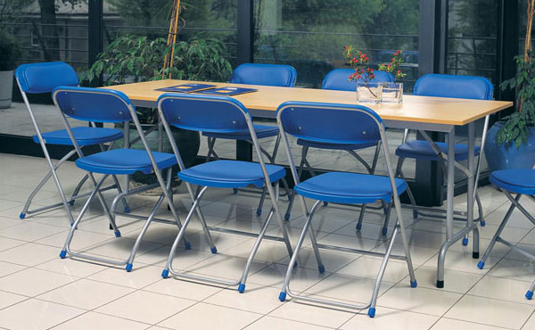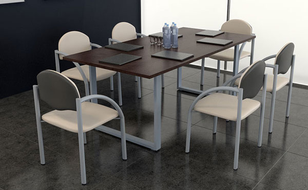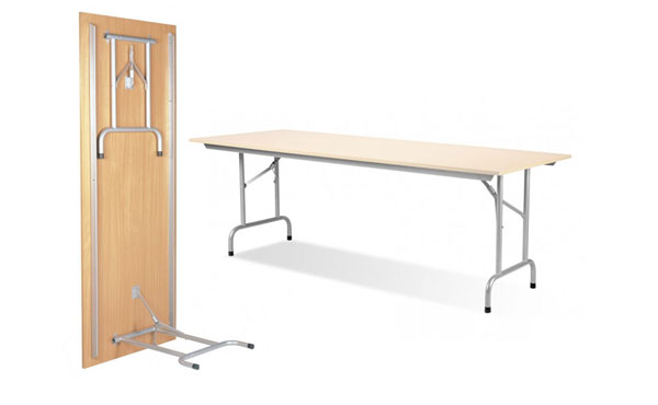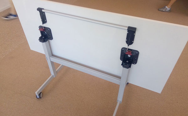 Colorado conference tables have a foldable metal frame on wheels. The legs on the frame are powder-coated in three colors and have brakes. The table can be folded to a vertical position. The top is 18 mm or 25 mm thick.