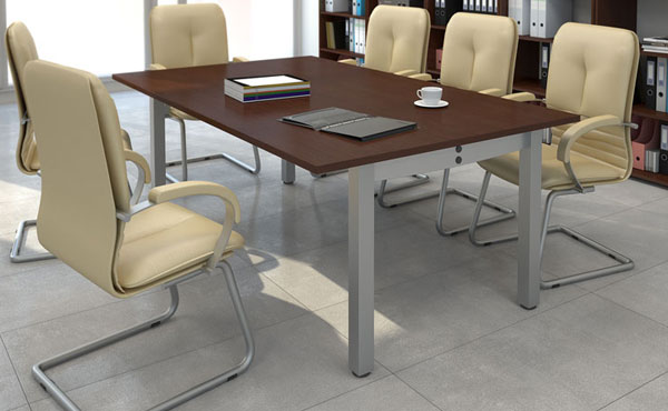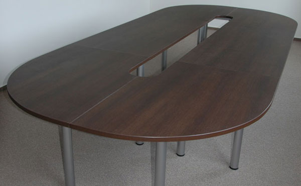 T-shaped frames - Texas have a vertical cable channel inside the leg, and the legs are set back from the ends of the tabletop. The prestigious and modern Oregon conference table system has an open square frame.