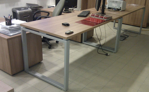 Montana with a sturdy metal frame. Legs with a square profile of 60x60 mm and height adjustment of +/- 25 mm. Legs welded together with an aesthetic connecting plate. Table top with a thickness of 18 or 25 mm with a reinforcing metal beam.