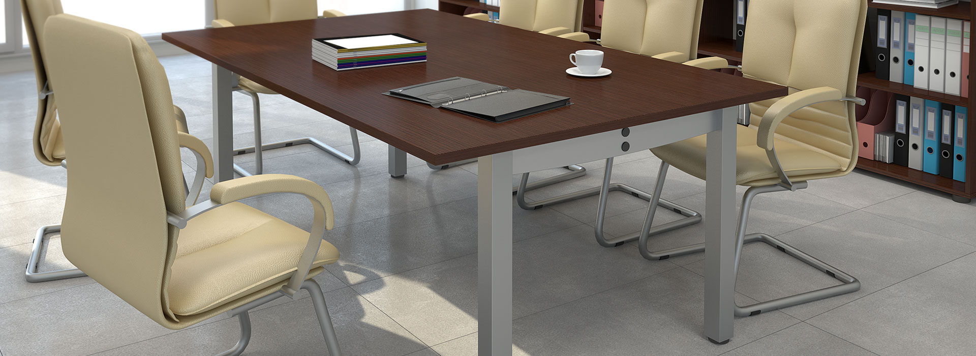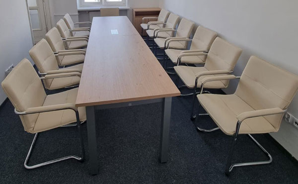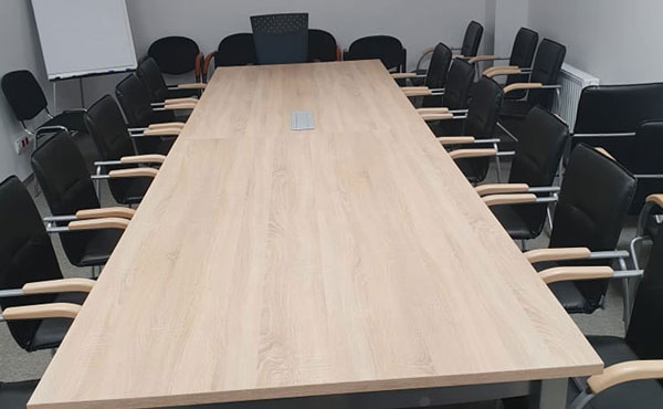 Accessories for conference tables include various add-ons, printer cabinets, cable trays, grommets in tabletops, and media ports with built-in connectors. We invite you to check out our catalog and price list for tables with accessories. It is possible to make custom tables to any dimension. The lead time for Montana Conference Table systems is about 2-3 weeks. We provide our own transportation and experienced installation team. For larger orders, we deliver furniture to Western Europe. The cost of transportation is calculated individually for each order.