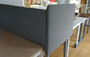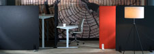 In unserem Angebot finden Sie gepolsterte Wände, die mit Winkeln und verschiedenen Halterungen an Schreibtischen montiert werden können - sogenannte Hänge-Wände. Auf diese Weise können sie leicht demontiert werden. Die Halterungen mit Klammer sind in drei Farben erhältlich: weiß, alu und schwarz. Diese Wände haben jedoch eine begrenzte Höhe (von 40 cm bis etwa 55 cm über dem Schreibtisch), so dass sie den Raum nicht so gut dämpfen wie hohe, stehende akustische Paneele.