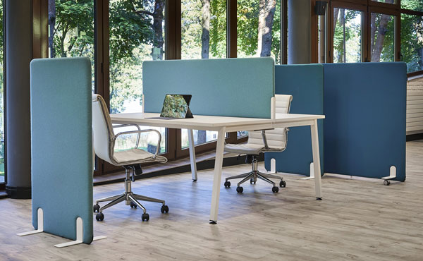 Gepolsterte akustische Paneele können entweder auf speziellen Standfüßen oder Rollen stehen. Dadurch werden sie mobil und können zwei Zwecke erfüllen. Sie können Schreibtische voneinander trennen und so Boxen für beispielsweise Call Center schaffen, aber auch Büroflächen voneinander trennen. Auf Anfrage können wir die Wände an Wänden oder Böden befestigen, dies erfordert jedoch Eingriffe in die Gebäudestruktur. Sowohl die Standfüße als auch die Rollen sind in vier Farben erhältlich: Schwarz, Weiß, Alu oder Grau. Alle sind pulverbeschichtet.