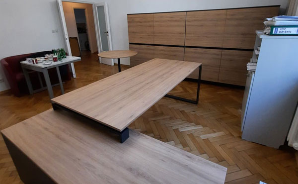 Zusätzlich empfehlen wir Kabeldurchlässe im Tisch, Mediaports mit eingebauten Anschlüssen oder hängende Körbe für Kabel. Wir laden Sie ein, unseren Katalog und Preisliste für Büromöbel mit Zubehör anzusehen. Es besteht die Möglichkeit, individuelle Büromöbel in jeder Größe zu fertigen. Die Lieferzeit für das North Carolina Büromöbelsystem beträgt etwa 5-7 Wochen. Wir bieten unseren eigenen Transport und Montage durch erfahrene Teams an. Bei größeren Bestellungen liefern wir Möbel in Westeuropa. Die Transportkosten werden individuell für jede Bestellung berechnet. Eine Lieferung auf Paletten zur Selbstmontage ist möglich.