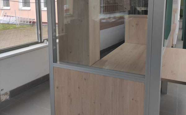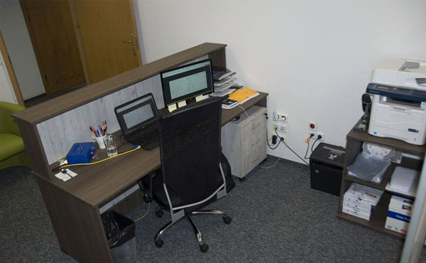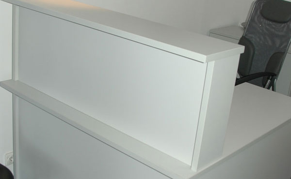 Empfangstheke Louisiana auf einem Plattenständer. Zwei robuste Beine aus einer Möbelplatte mit einer Dicke von 25 mm und Nivelliereinstellung (+/- 25 mm). Die Beine sind durch einen Metallverstärkungsbalken verbunden, der unter der dicken Platte - 25 mm - angebracht ist und gleichzeitig als horizontale Verkabelungskanalleiste dient. Der untere Teil der Lady wird durch Rückwände aus einer 18 mm dicken Platte verstärkt, die mit den Beinen durch eine Exzenterwelle verbunden sind. Dank der modularen Konstruktion ermöglicht Lady Louisiana eine funktionale Anordnung jedes Empfangsbereichs. Weiterlesen »