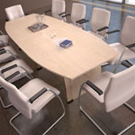 Die Oklahoma Konferenztische spiegeln perfekt die Schönheit geometrischer Formen wider. Die Oberflächenstruktur aus Furnier in natürlichen Holztönen unterstreicht die Schönheit des modernen Stils. Die verwendeten robusten Materialien bieten einen hohen Arbeitskomfort und Benutzerfreundlichkeit.