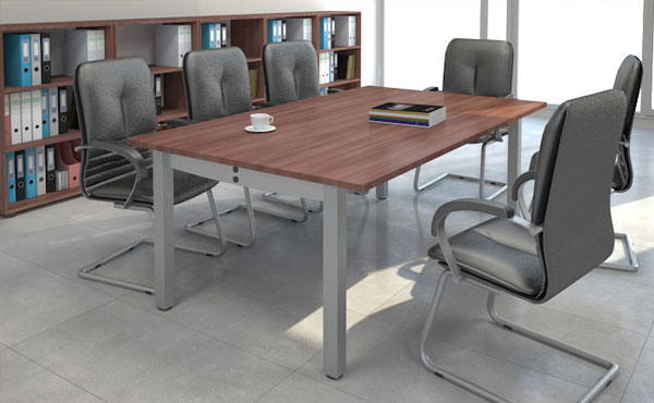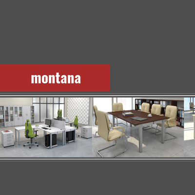 Konferenztische Montana haben einen soliden Metallrahmen mit vier pulverbeschichteten Stahlbeinen in verschiedenen Farben und einem quadratischen Profil von 60x60 mm mit Nivelliereinstellung (+/- 25 mm). Die Beine sind durch eine ästhetische Verbindungsplatte miteinander verschweißt. Die Tischplatte ist in zwei Dicken erhältlich, 18 oder 25 mm. Die Metallstrebe, die unter der Tischplatte angebracht ist, verbindet die Beine und dient gleichzeitig als horizontale Kabelkanal. Dank der modularen Konstruktion ermöglichen Montana-Konferenztische eine funktionale Gestaltung jeder Bürofläche.