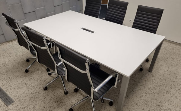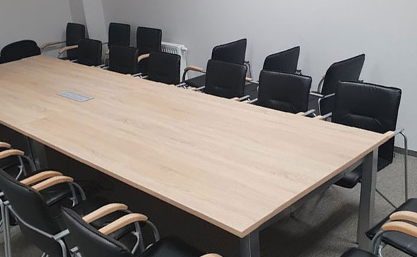 Zubehör für Konferenztische umfasst zahlreiche Erweiterungen wie Drucker-Schränke, hängende Kabelkörbe, Öffnungen in den Tischplatten oder Media-Ports mit verschiedenen integrierten Anschlüssen. Wir laden Sie ein, unseren Katalog und Preisliste für Tische mit Zubehör anzusehen. Es besteht die Möglichkeit, maßgefertigte Tische in beliebiger Größe zu bestellen. Die Lieferzeit für den Montana-Konferenztisch beträgt ca. 2-3 Wochen. Wir bieten auch unseren eigenen Transport und Montageservice durch erfahrenes Personal an. Bei größeren Bestellungen liefern wir Möbel in Westeuropa. Die Transportkosten werden individuell bei jeder Bestellung berechnet.