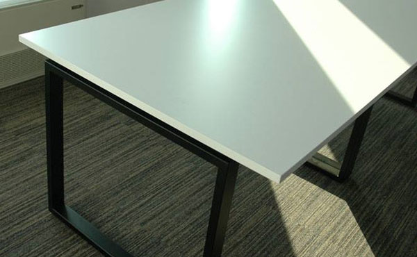 Konferenztische Oregon mit modernem und stilvollem Metallgestell. Zwei Beine in Form eines Quadrats (Profil 60x30 mm) mit Höhenverstellung, verbunden durch einen Unterbodenbalken, der gleichzeitig ein horizontaler Kanal für die Verkabelung ist. Das Gestell ist pulverbeschichtet und in mehreren Farben erhältlich. Die Tischplatte besteht aus einer 18 oder 25 mm dicken Platte. Dank der modularen Konstruktion ermöglichen die Oregon-Tische eine funktionale Anordnung jeder Bürofläche.