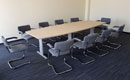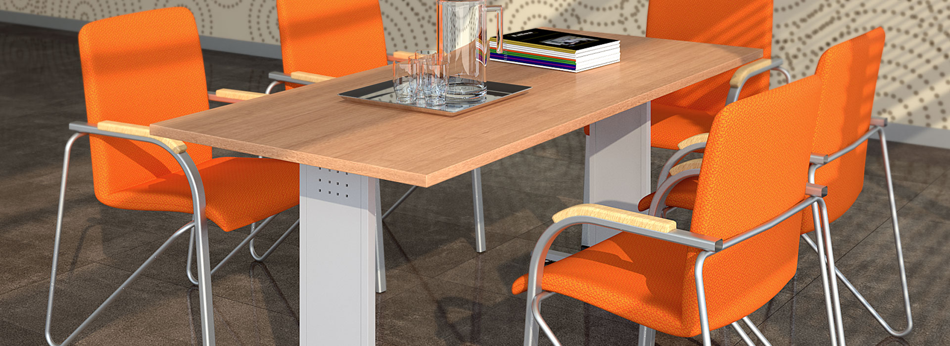 Zubehör für Konferenztische umfasst zahlreiche Anbauteile, Druckerkommoden, hängende Kabelkörbe, Durchlässe in den Tischplatten oder Mediaboxen mit verschiedenen integrierten Anschlüssen. Wir laden Sie ein, unseren Katalog und die Preisliste für Tische mit Zubehör anzusehen. Es besteht die Möglichkeit, individuelle Tische nach Maß herstellen zu lassen. Die Lieferzeit für das Texas-Konferenztischsystem beträgt etwa 4-5 Wochen. Wir bieten unseren eigenen Transport und die Montage durch erfahrene Teams an. Bei größeren Bestellungen liefern wir die Möbel in Westeuropa aus. Die Transportkosten werden individuell für jede Bestellung berechnet.