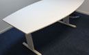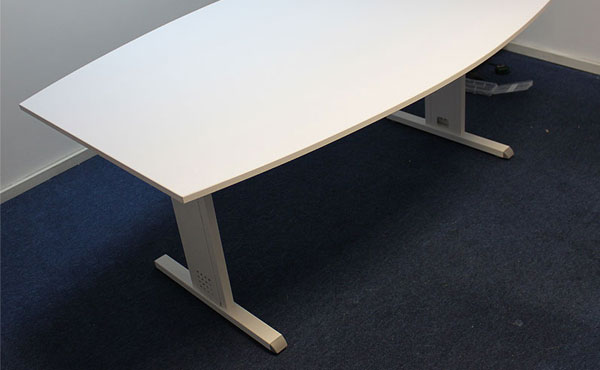 Die Konferenztische Texas sind eine solide Konstruktion auf einem freistehenden Stahlgestell. Es handelt sich um zwei Beine in Form des umgekehrten Buchstabens "T" mit einer abnehmbaren Abdeckung im Inneren des Beins, durch die Kabel geführt werden können. Die Beine sind durch einen großen metallischen Unterbodenbalken verbunden, der sich entlang der Mitte der Tischplatte befindet und von unten an die Tischplatte geschraubt wird. Das Ganze ist durch eine 2-jährige Garantie abgedeckt!