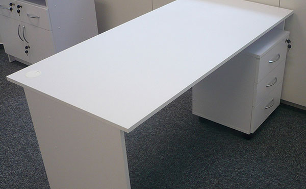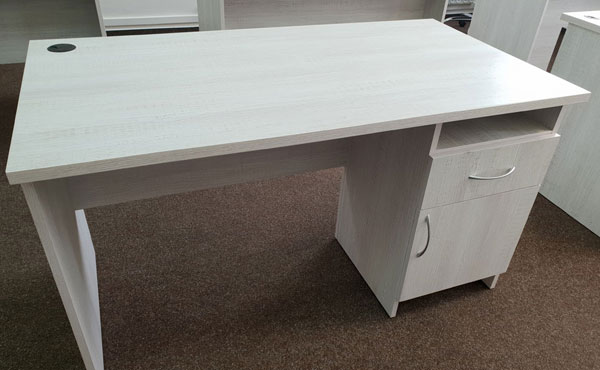 Die Alaska-Schreibtische haben einen Rahmen mit zwei Plattennocken mit einer Dicke von 18 mm. Die Beine sind auf Gleitern montiert und durch zurückgesetzte Rücken miteinander verbunden, was mehr Platz unter der Platte und damit mehr Arbeitskomfort mit dem Kunden bietet. Die Tischplatte ist in zwei Dicken von 18 oder 25 mm erhältlich. Das Alaska-Schreibtischsystem zeichnet sich durch den Abstand zu den in die Schreibtischkonstruktion eingebauten Containern aus, der für die Aufbewahrung von laufenden Dokumenten vorgesehen ist.