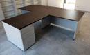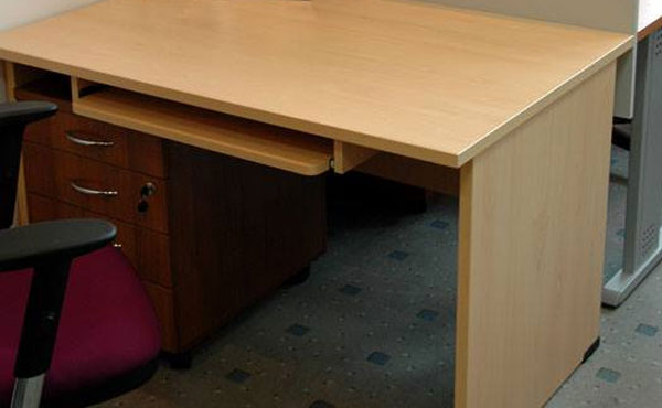 Die Dakota-Schreibtische haben einen Rahmen aus Platten. Zwei solide Beine aus einer Möbelplatte mit einer Dicke von 25 mm mit Nivellierung (+/- 25 mm). Die Beine sind durch einen Metallträger miteinander verbunden, der unter der dicken Tischplatte - 25 mm - angebracht ist und gleichzeitig als horizontale Verkabelungskanäle dient. Der Rücken des Schreibtisches, der aus einer 18 mm dicken Platte besteht, wird mit den Beinen durch eine Exzenterverbindung verbunden, was zusätzliche Stabilität bietet. Aufgrund der modularen Konstruktion der Dakota-Schreibtische kann jeder Bürobereich funktional gestaltet werden.