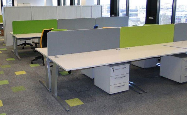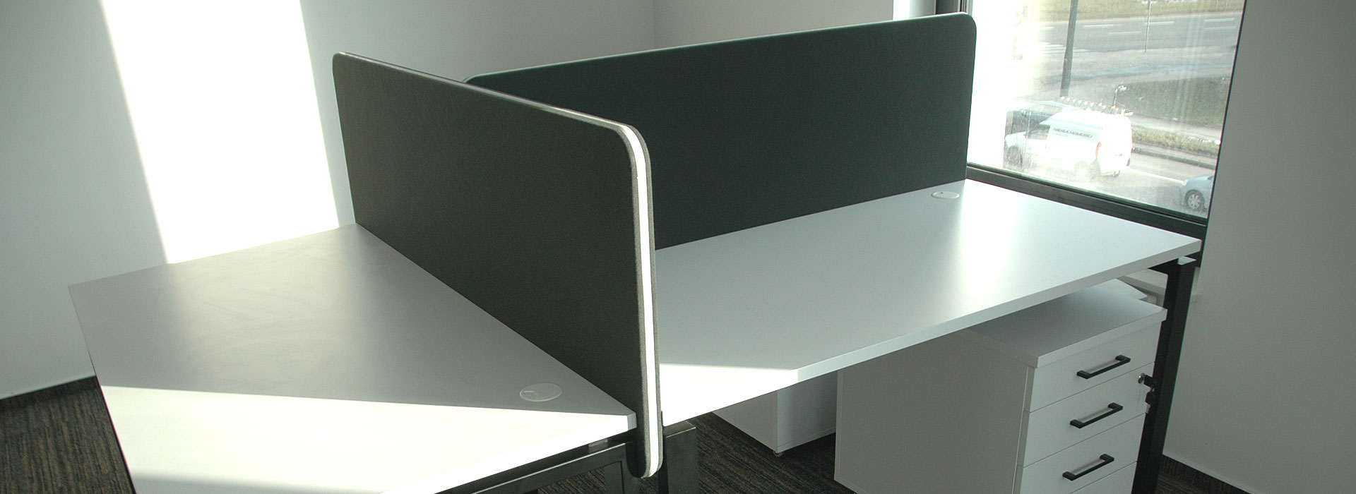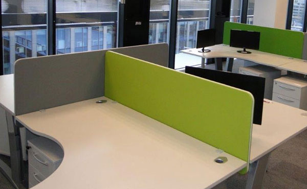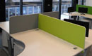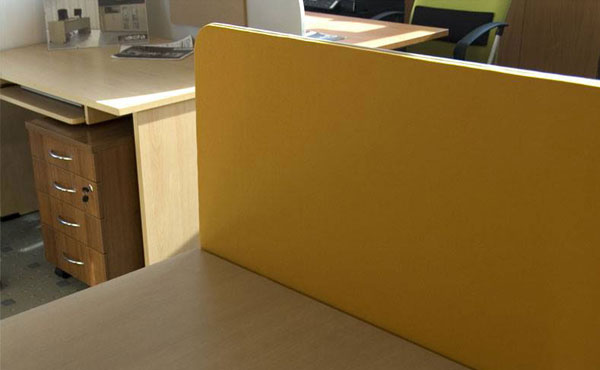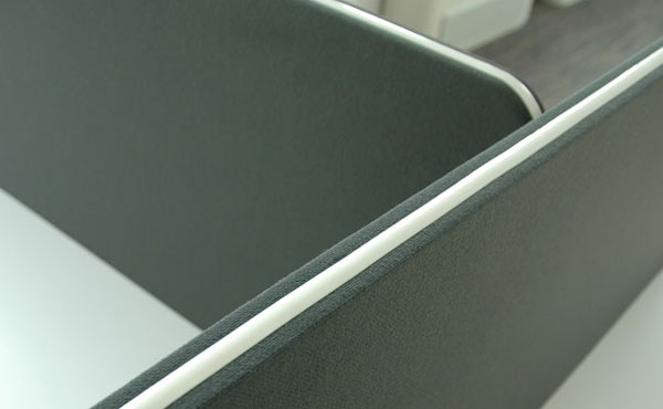 Die Trennwände Idaho sind aus MDF-Platten gefertigt, auf die eine schallabsorbierende Schaumstoffschicht und dann eine Polsterung aufgebracht wird. Wir bieten mehrere Arten von Polsterbezügen in einer reichen Farbpalette an. Die Trennwände können entweder zwischen den Schreibtischen mit Halterungen oder von unten mit Winkeln an der Tischplatte befestigt werden. Wenn Sie höhere gepolsterte Trennwände benötigen, empfehlen wir Ihnen, sich die anderen Arten von Trennwänden wie Hawaii und Kentucky anzusehen.