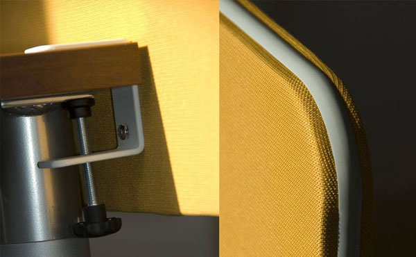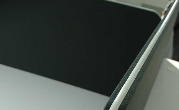 Die Idaho Partitionswände bestehen vollständig aus MDF-Platten, die beidseitig mit drei Arten von Polsterbezügen in einer reichen Farbpalette bezogen sind. Die Höhe der Wände beträgt immer 52,7 cm (45 cm über dem Schreibtisch). Die Montage erfolgt mithilfe spezieller Halterungen, die an der Schreibtischplatte befestigt werden. Die Idaho Partitionswände werden am Schreibtisch befestigt, aber nicht auf der Tischplatte.