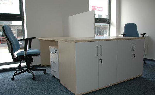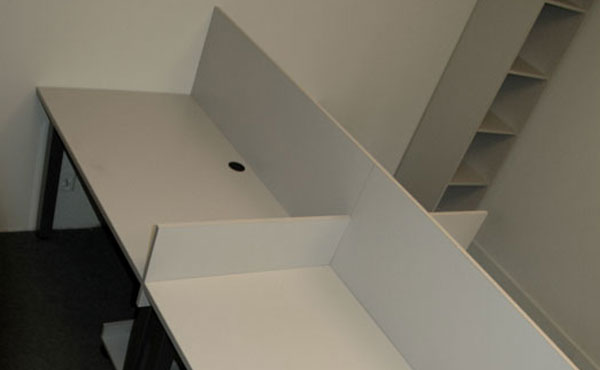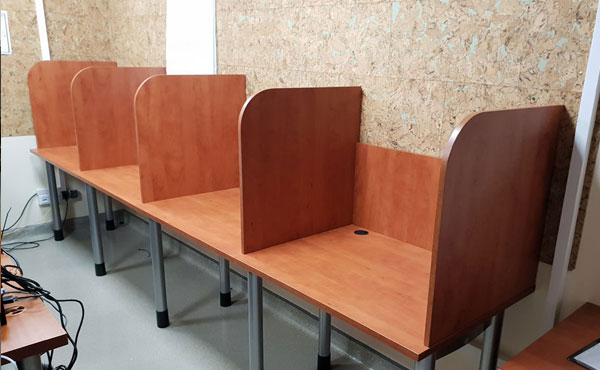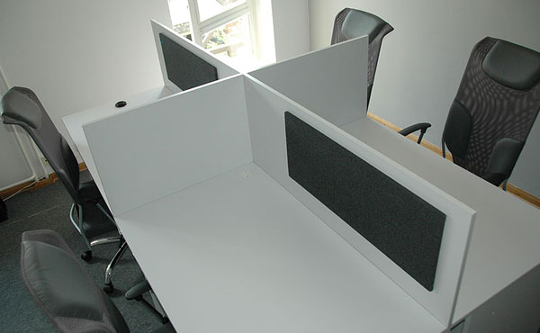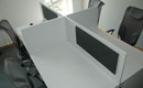 Wir bieten Trennwände zwischen Schreibtischen (hängende Trennwände zwischen den Schreibtischen) aus 18 mm Möbelplatte an, die von unten auf Winkel an der Tischplatte befestigt werden. Die stabile Konstruktion garantiert eine Trennung der Arbeitsplätze. Die Trennwände können entweder hängend oder stehend auf dem Boden montiert werden, was bei der Erstellung eines kostengünstigen Call Centers empfohlen wird. Diese Option finden Sie in unserem Bereich Büroboxen.