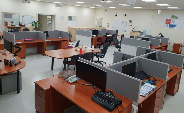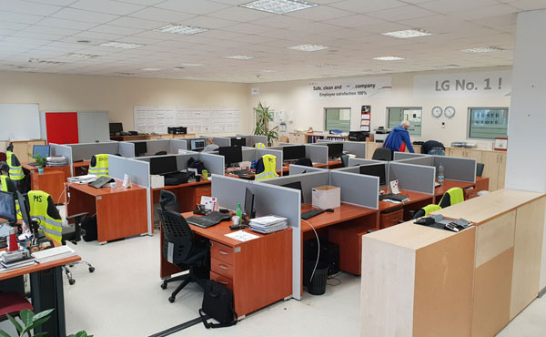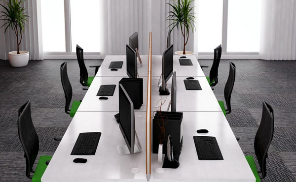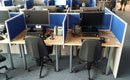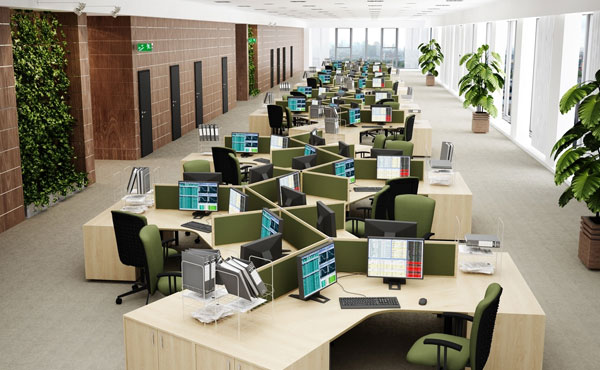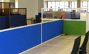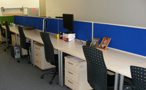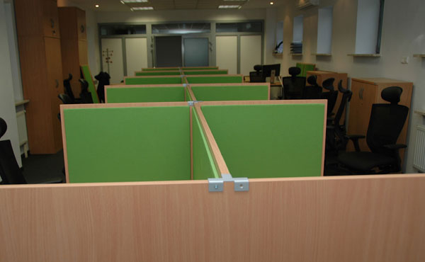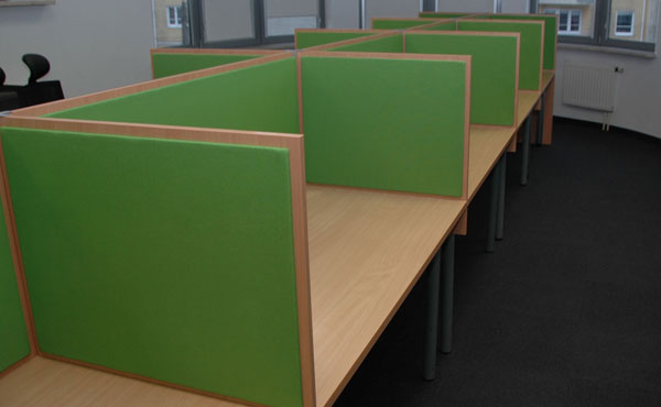 In addition to the function of separating workstations, partition walls also partially dampen the sound in the room. Standing partition walls with sound-absorbing panels can be used in a call center. The compositional possibilities are endless.