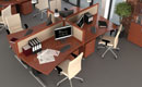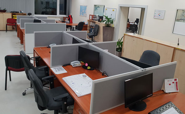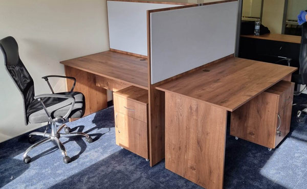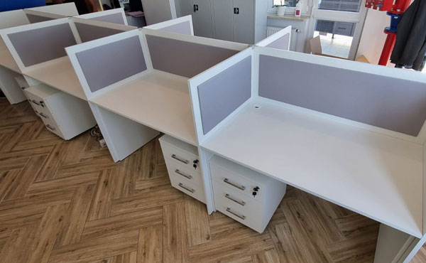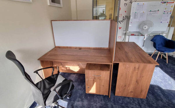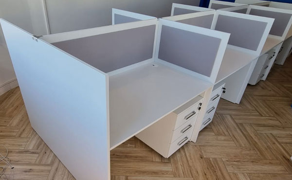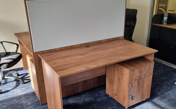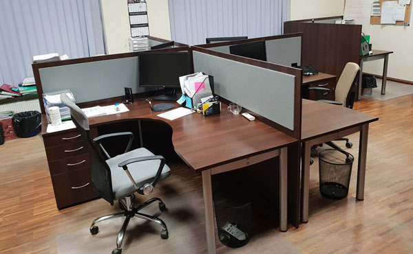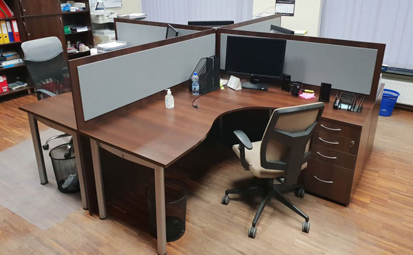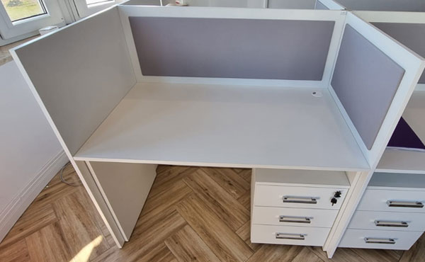 Georgia partition walls are made of 18mm thick furniture board with upholstered panels above the desk level, with the possibility of adding sound-absorbing foam. Both the board and the upholstery can be in any color from our palette. We offer several types of upholstery in a rich color palette.