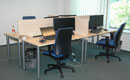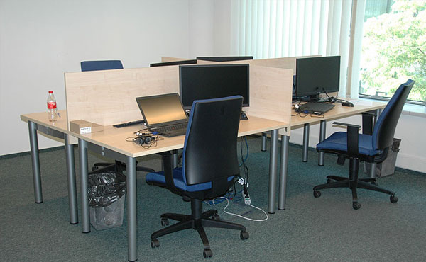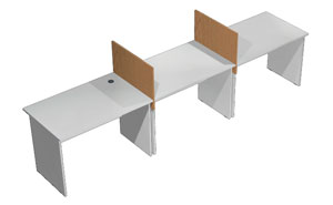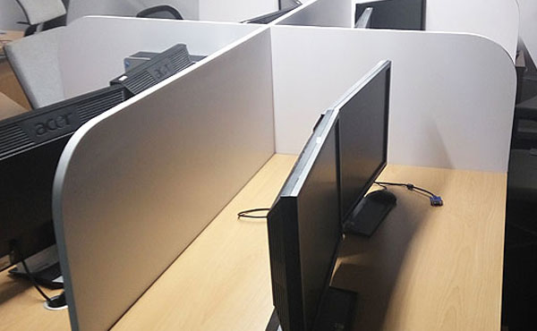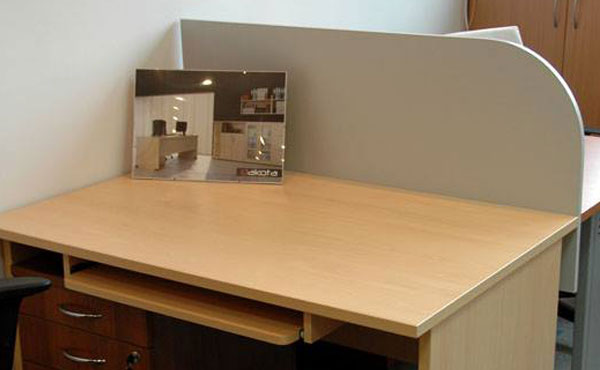 We offer inter-desk partitions (hanging walls between desks) made of 18mm thick board, mounted on brackets under the desk. The stable construction ensures the separation of workstations. The walls can be hanging or standing on the ground, which is recommended for creating a cost-effective call center. You will find this option in our call center booths section.