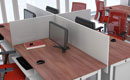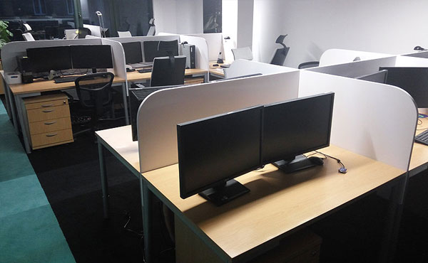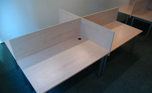 Utah partition walls are entirely made of 18mm thick melamine board, covered with a 1mm thick abs edging. We offer numerous inter-desk partitions and extensions made of board, also in non-standard shapes, upon customer request. The dividing elements between the desks can have any shape and size. Utah partition walls fit into any open space in Warsaw and Poland. The product is 100% manufactured by us. The walls are mounted from the bottom of the desks on brackets.