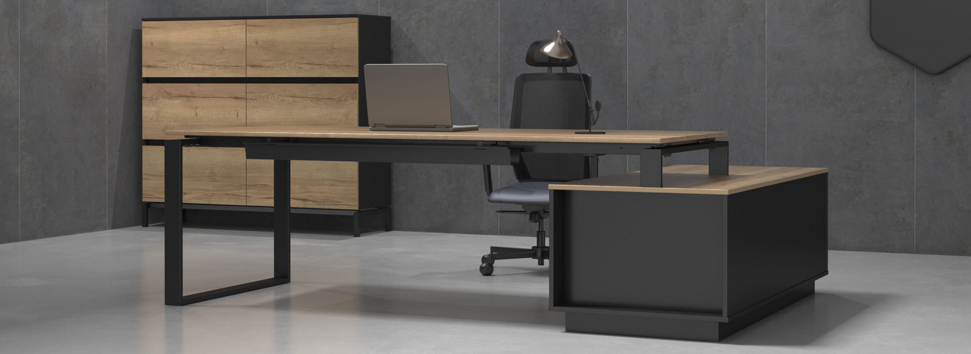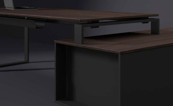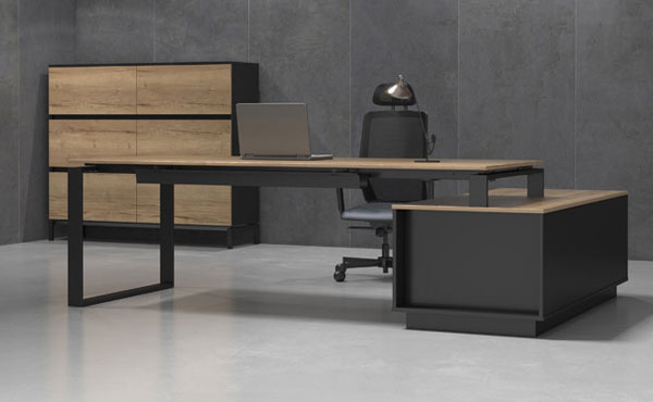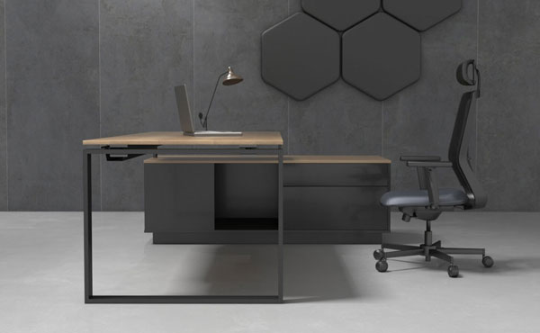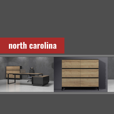 North Carolina executive furniture features a graphite frame combined with wood-like decor, dressed in a modern form. It is modern but not overloaded with seasonal, unjustified extravagance, which allows it to successfully exist in more or less modernist interiors, enjoying timeless aesthetics. The furniture focuses on mathematically chosen proportions and noble materials. North Carolina office furniture enables a functional arrangement of any office space.