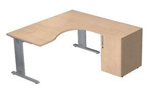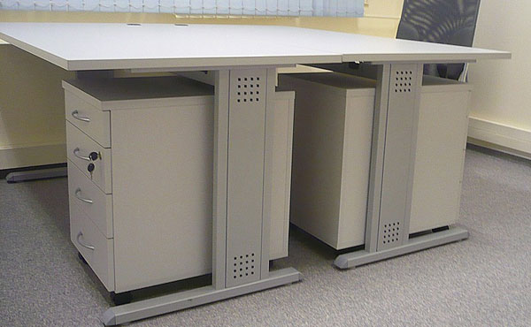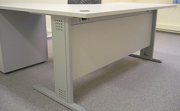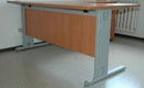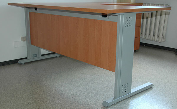 Texas office furniture is a solid construction based on a freestanding steel frame. The two legs are shaped like an inverted "T" with a removable cover inside the leg for routing cables. The legs are connected by a large metal sub-top beam for cables running through the center of the desk and screwed to the bottom of the desk. The entire desk is covered by a 2-year warranty!