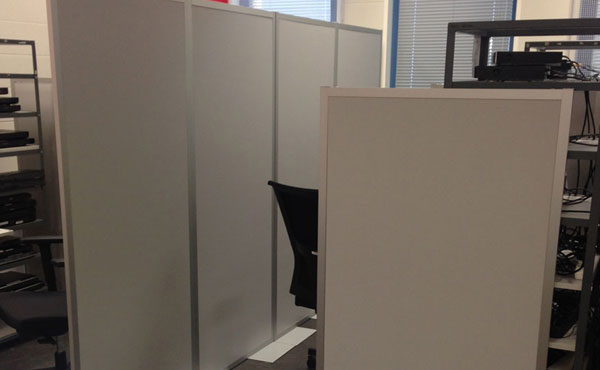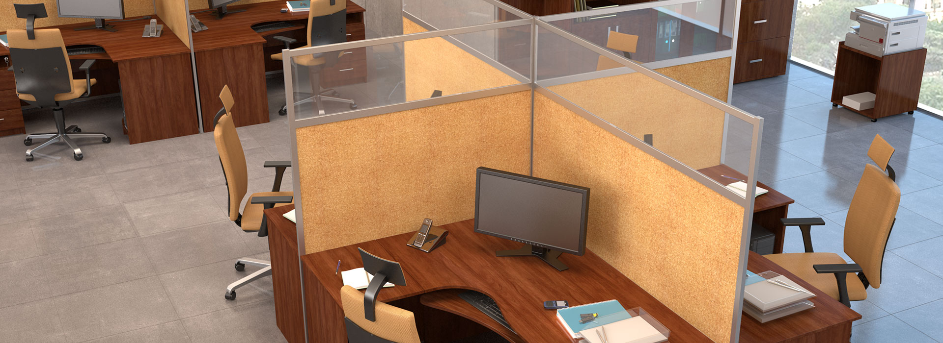 We also offer partitions and furniture for call centers and open spaces made of furniture board or upholstered. In general, we can make an entire call center in any of our partition wall systems. It all depends on your budget.