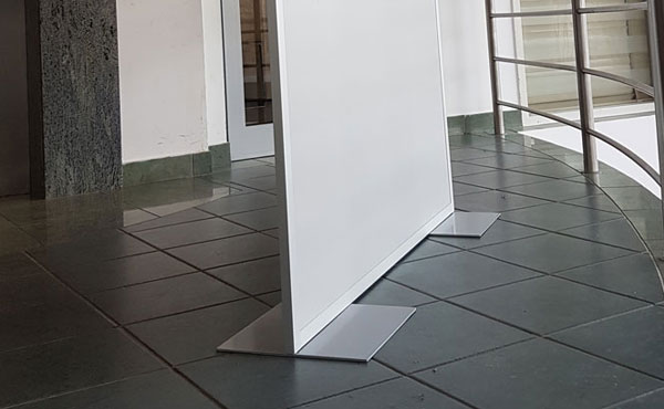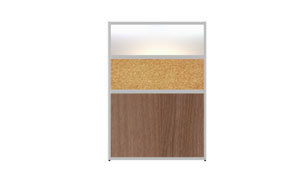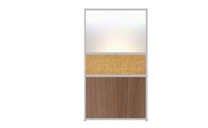 Nebraska walls are made of 30x20mm aluminum profiles filled with materials of different functional and aesthetic characteristics. The walls are available in three heights and any length. The aluminum profiles are filled with 18mm thick furniture boards, 4mm thick glass (clear or frosted, tempered or laminated with foil), or aesthetically pleasing sound-absorbing cork. Nebraska walls have adjustable feet that allow for leveling of the composition.