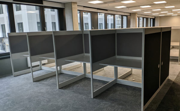 We also offer partitions and furniture for call centers and open spaces made of furniture board or upholstered. Generally, we are able to make a complete call center in any of our partition wall systems. Everything depends on your budget.