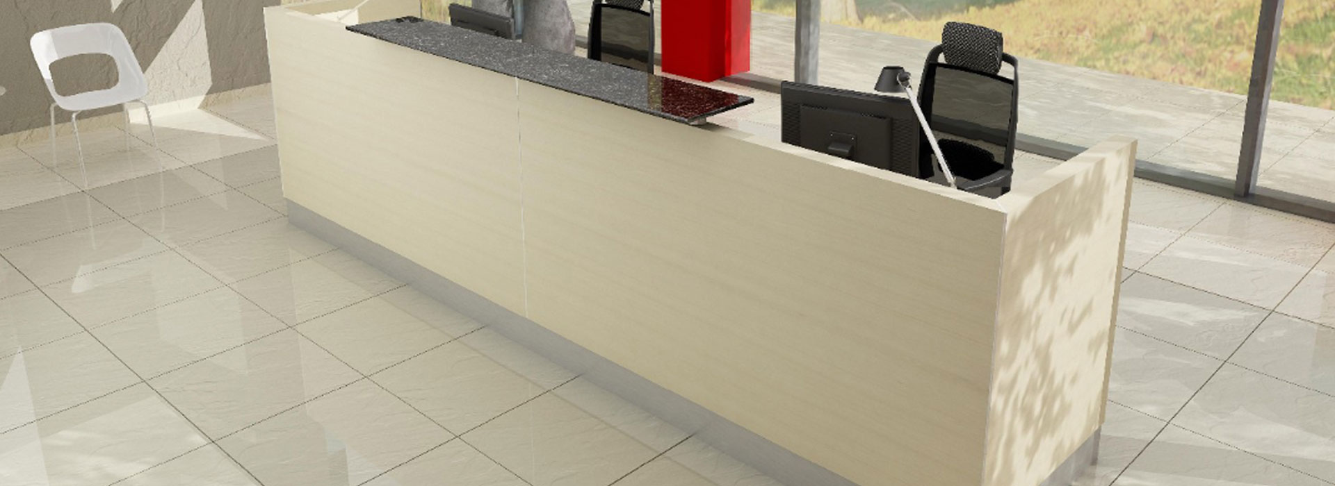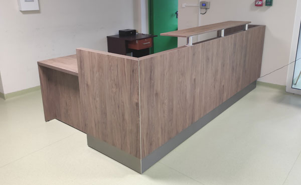 We offer a 2-year warranty on our reception desks! We guarantee the durability of the construction. Desk accessories include numerous attachments, extensions, cabinets, hanging shelves, keyboard shelves, and mobile helpers with drawers, doors, for computer central units and printers. We also recommend cable ducts in the top, media ports with built-in connectors, or suspended baskets and vertical cable spines. We invite you to view our catalog and price list of desks with accessories. We can also provide custom-made reception furniture. The delivery time for the Iowa system is approximately 5-12 weeks. We provide transportation and assembly by an experienced team. For larger orders, we can deliver furniture to Western Europe. The cost of transportation is calculated individually for each order.