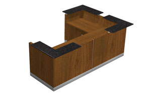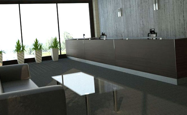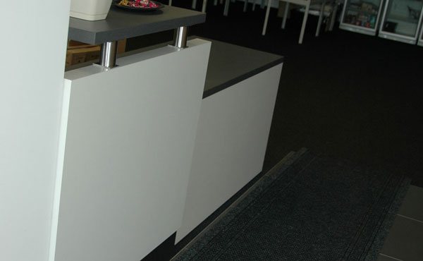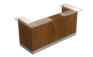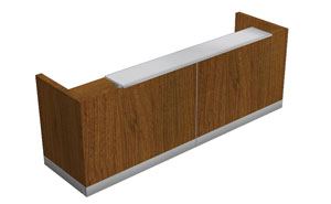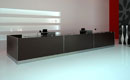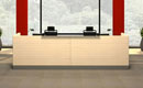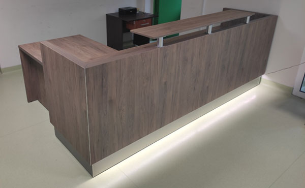 The Iowa reception desk features thick, luxurious tabletops made from furniture board with a thickness of up to 36 mm. The frames are 18 mm thick, made of melamine-coated board finished with 2 mm ABS edging. The front panels are made of 64 mm thick melamine-coated board, with edges and plinths finished with HPL laminate. The joints of the modules are made of polished 3 mm aluminum sheet. Thanks to its modular design, the Iowa reception desk allows for a functional arrangement of any reception space.